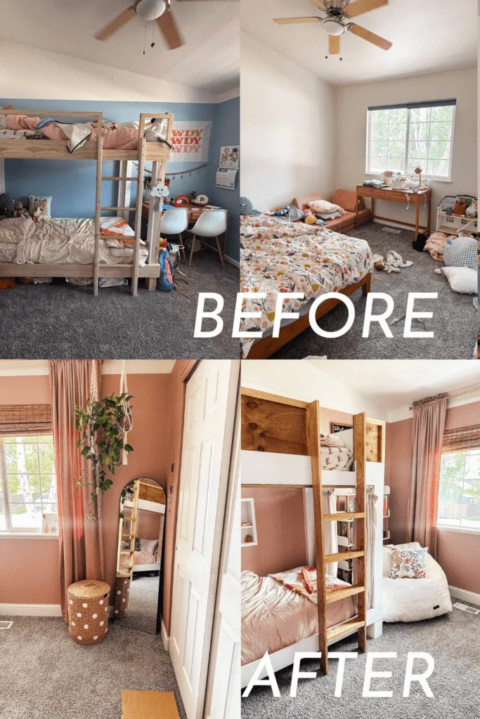 Our other big upgrade was finishing out girls’ room. We built them bunk beds the first few weeks we lived in this house but with everything else going on, we never finished them.