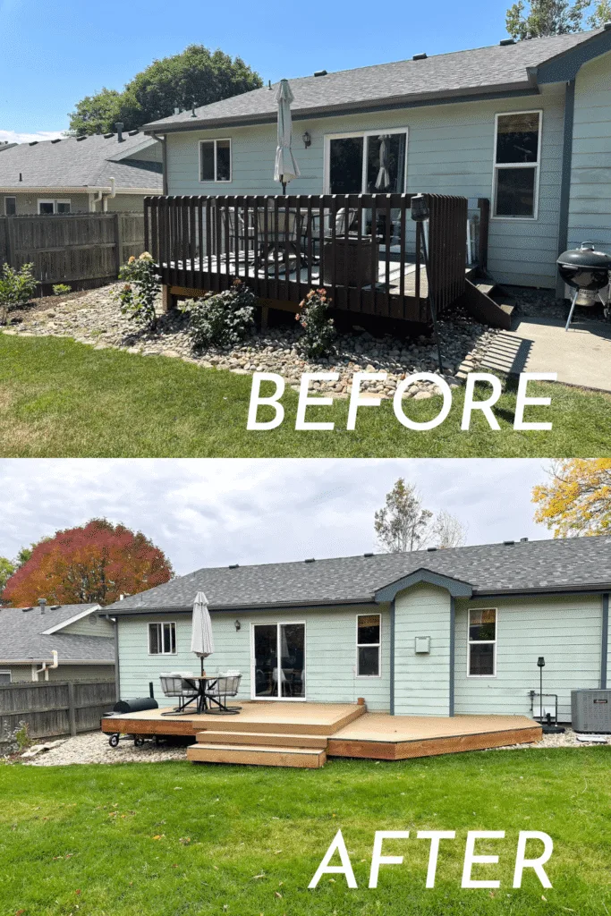 This is definitely one of the biggest projects we’ve completed back here. Besides replacing all our grass and landscaping. In the future, we’ll add crushed rock around our fire pit area (to the right of the deck in this photo) to create an intentional hangout space that flows off the lower deck section.