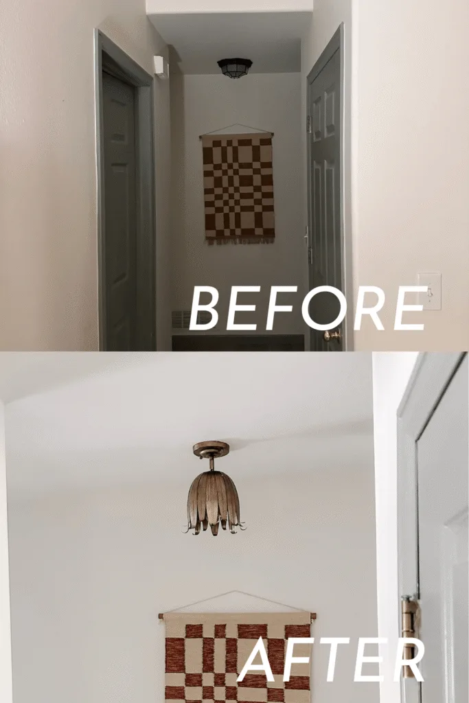 In total, I spent around $800 on lighting, and that covered our living room light, hallway light, entryway light, a small kitchen light, and an exterior porch light (not pictured because we haven’t installed it yet). Major upgrades for under $1,000!