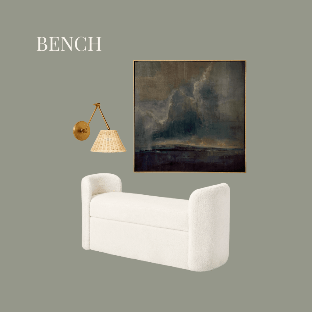 Ground the space with some art above the bench, like a gallery wall or large statement piece. Or add a mirror to help a small space feel bigger.