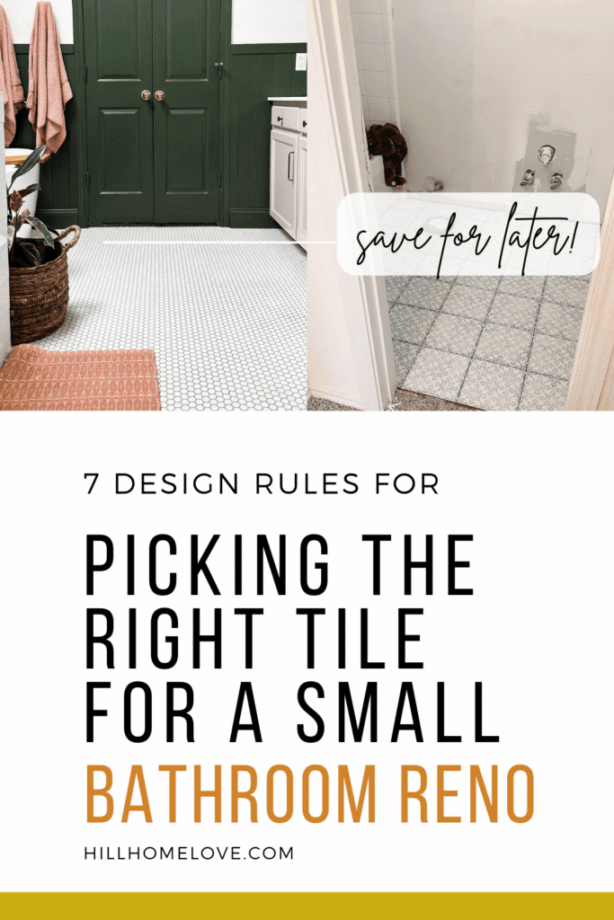 How do you pick bathroom tile for small bathrooms? After renovating three small bathrooms in the last two years, I’ve learned a few design tricks. Today I’m sharing these practical design rules to help make your tile decision process easier! And hopefully save you a few trips to the tile store.